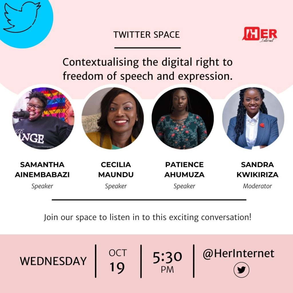 “This Twitter Space has been organized to position the campaign within the political and legal landscape for our key audiences and how this could apply to their daily use of the internet: their freedoms and potential infringements and violations, as well as the importance of speaking out against this,” said MsKwikiriza.
