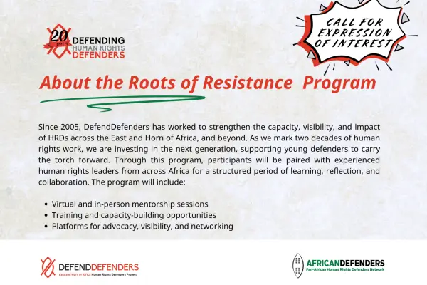 Opportunity: DefendDefenders Launches “Roots of Resistance” Mentorship Program for Young HRDs 🌱